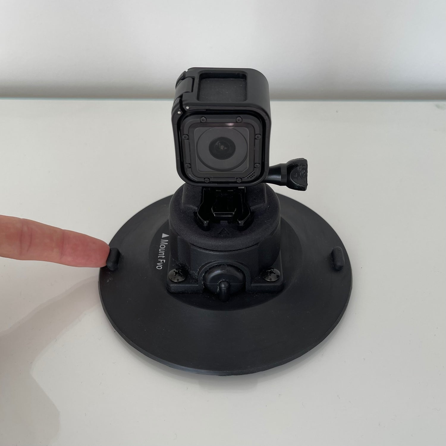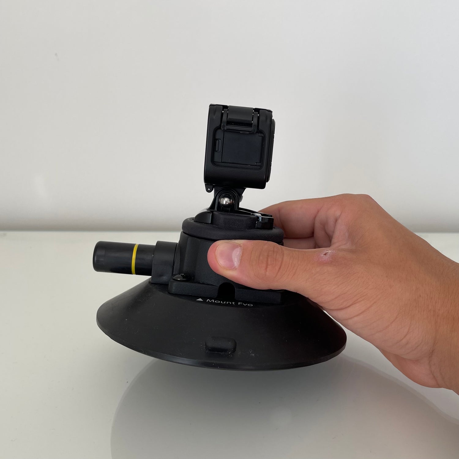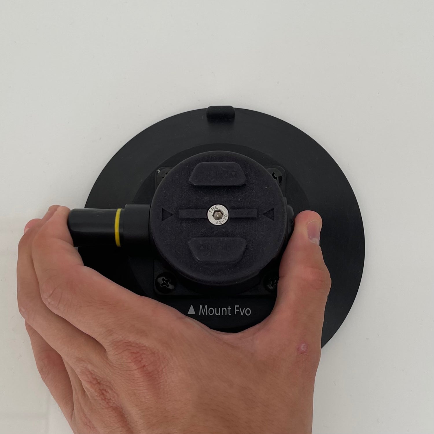 Position Capture in the desired mounting place then start pumping the plunger on the side of the vacuum cup. Once the yellow indicator band on the plunger is no longer visible, Capture is secure.