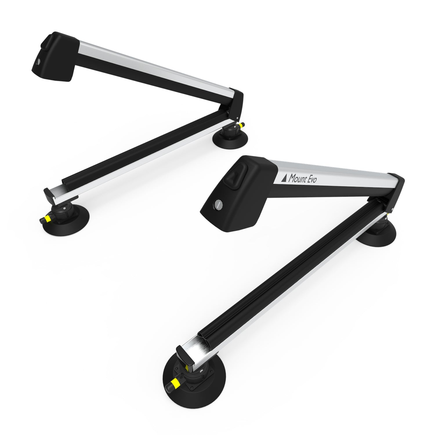 Take both Piste mounts with vacuum cups attached and place on the roof of the car width ways. Space the mounts accordingly for the skis/board you’ll attach to Piste. Bare in mind the size of the load when doing this step.