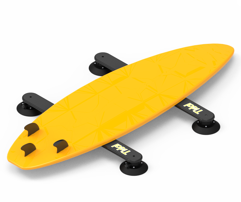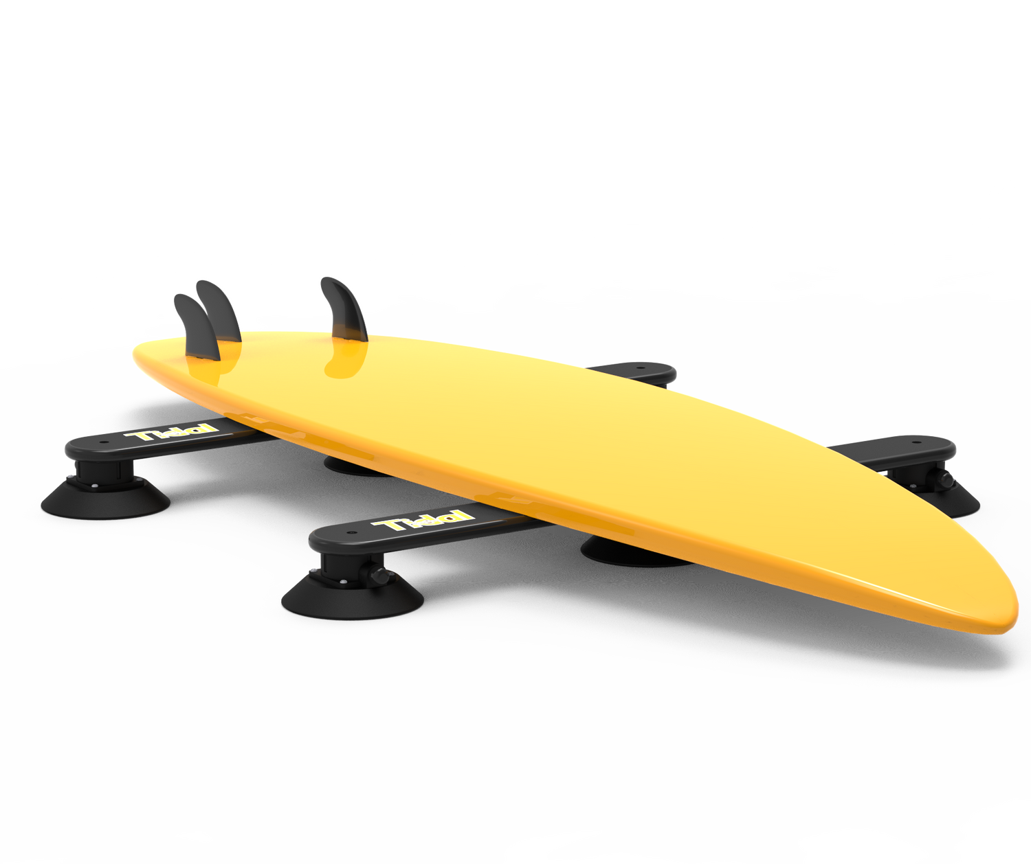 Place your board on Tidal so that when resting it is balanced evenly between the two Tidal mounts. Your board should be facing forwards and in the direction of travel of the vehicle.