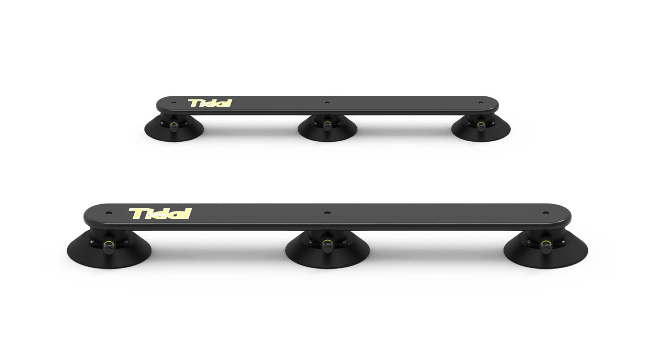 Take both Tidal mounts with vacuum cups attached and place on the roof of the car width ways. Space the mounts accordingly for the board/item you’ll attach to Tidal. Bare in mind the size of the board when doing this step.