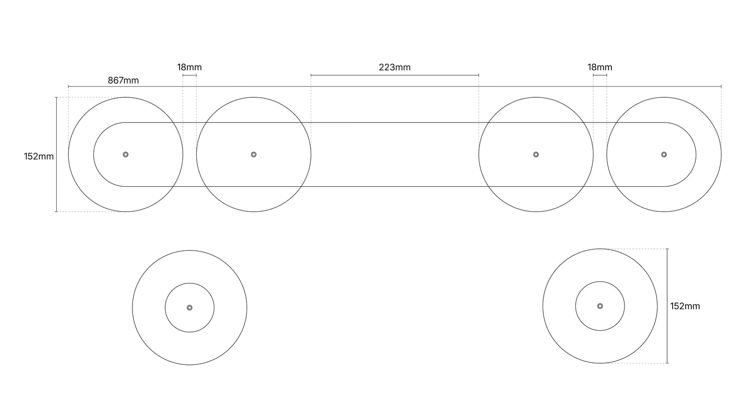 - Dimensions - Main Base - W152mm x L867mm x H127mm.