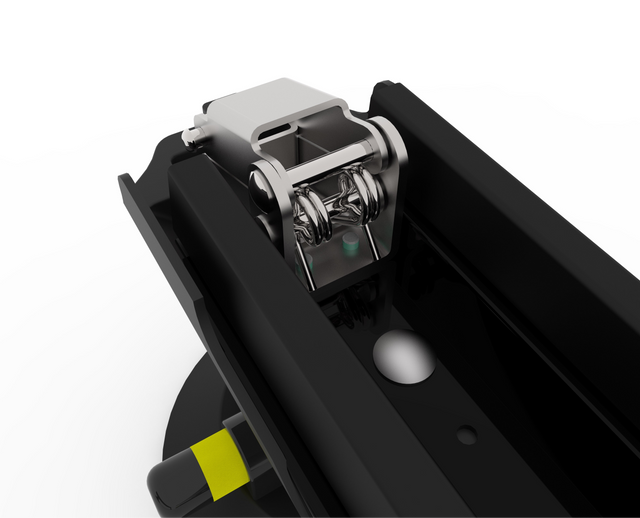 A unique double hinge, designed to evenly distribute pressure across your skis. This increases safety by ensuring all skis are fastened securely.