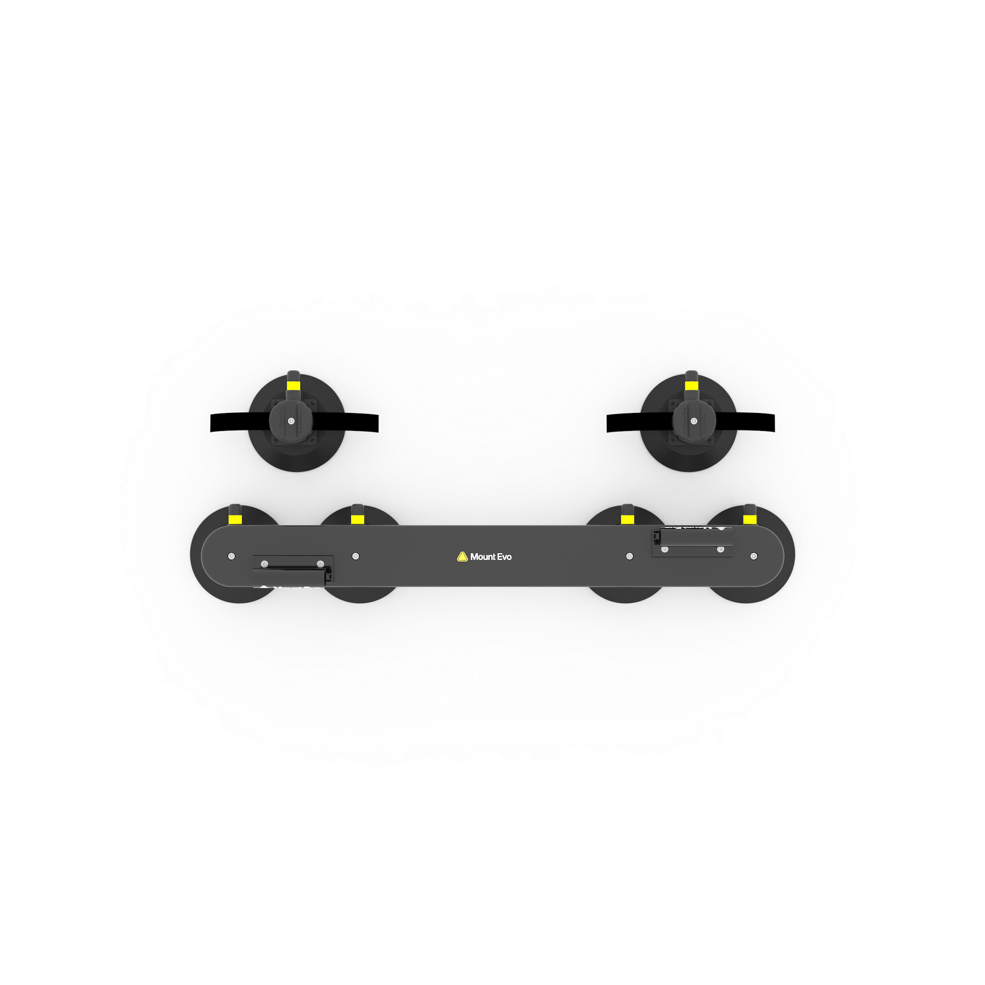 Alimenté par des ventouses de qualité industrielle. Solo a plus de 400 kg de force de maintien. Assez facilement pour maintenir un membre de l'équipe Mount Evo à l'envers.