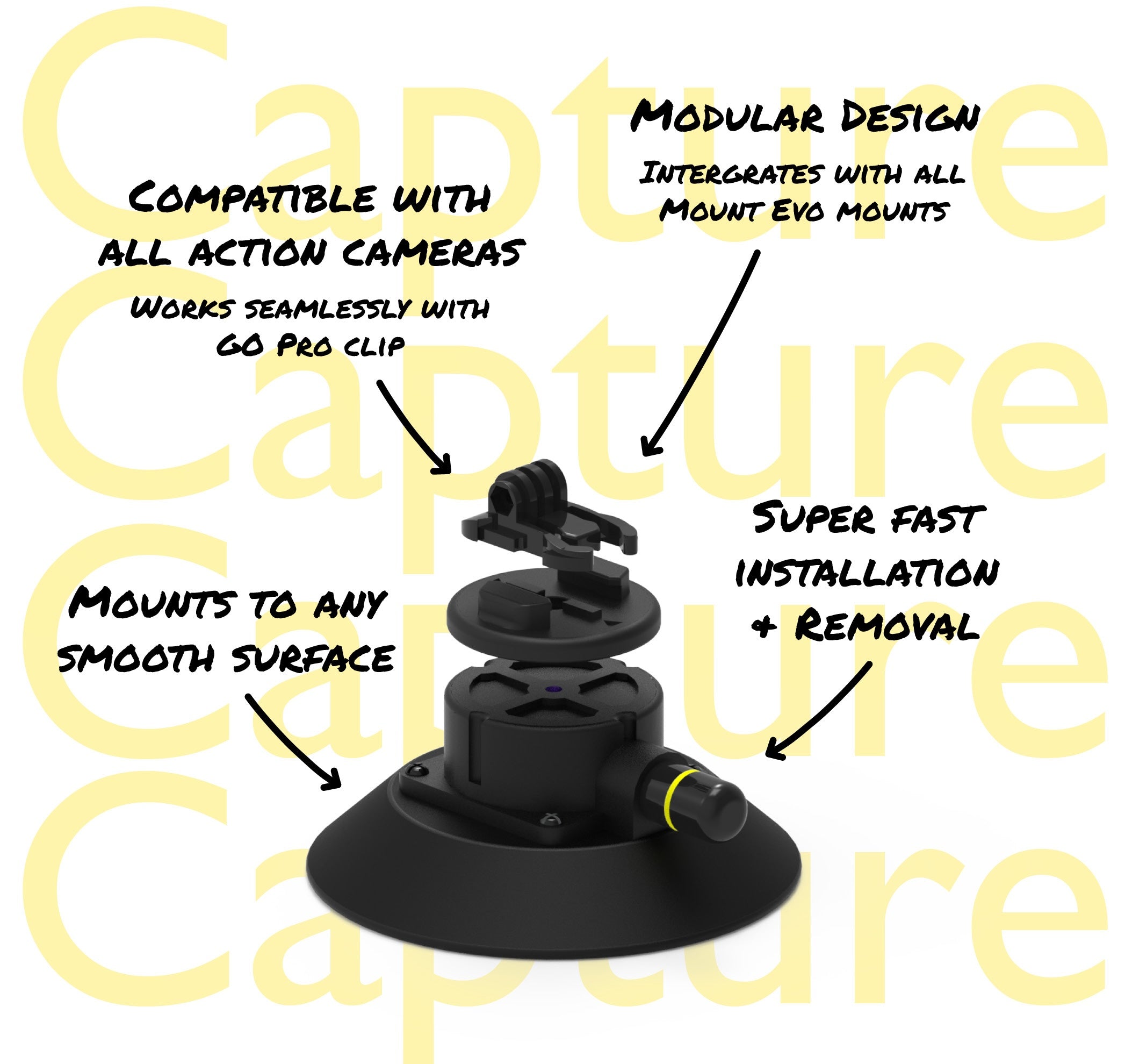 La gama Mount Evo es modular y Capture no es diferente. Esto significa que las ventosas son intercambiables y pueden utilizarse con cualquiera de nuestras monturas.