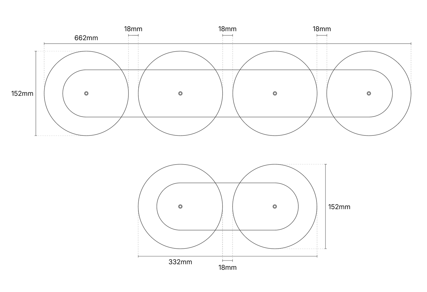 - Dimensiones - Base principal - W152mm x L662mm x H127mm.