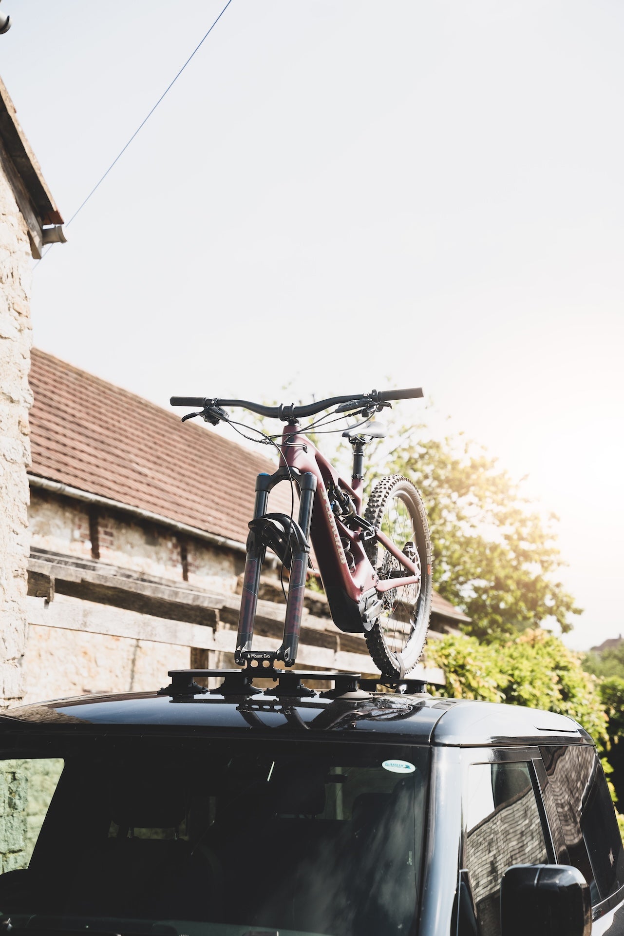 Nunca se deben sujetar los cuadros de carbono de las bicicletas. Por eso, todos los portabicicletas Mount Evo se fijan a la bicicleta mediante las horquillas.