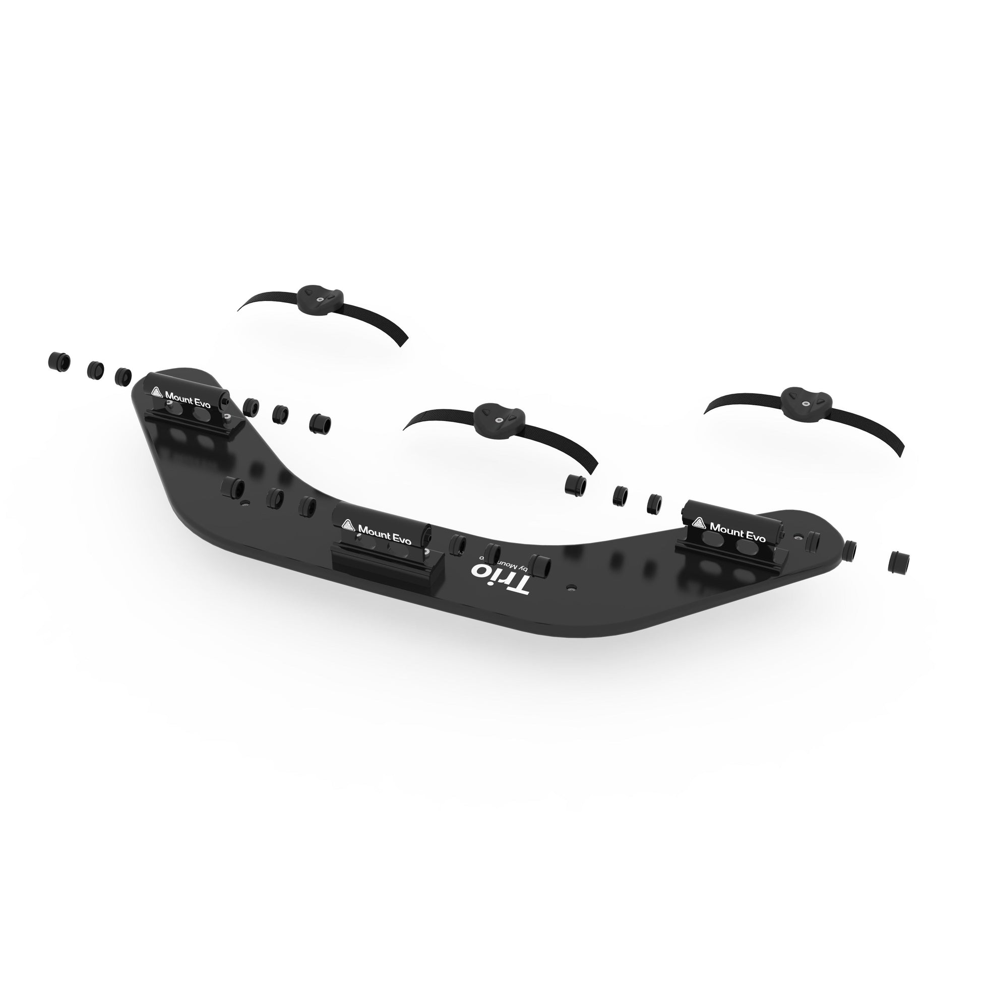 La base modular Duo incluye todo lo necesario para montar dos bicicletas, excepto las ventosas. Debe poseer ya una o más ventosas Mount Evo para comprar una base modular.